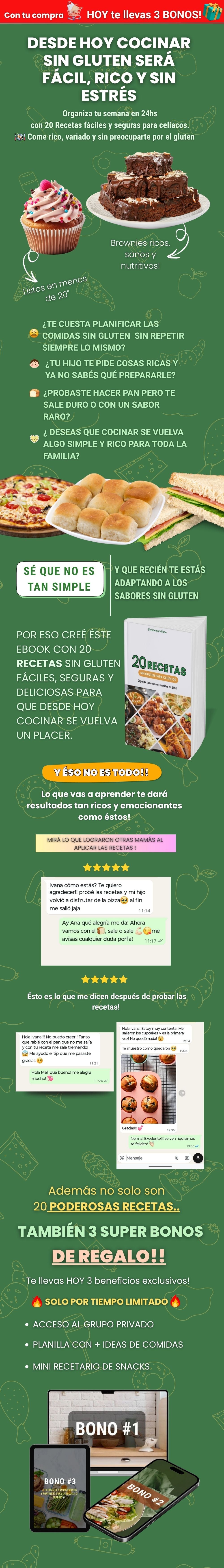 20 Recetas sin gluten para tu hijo Celíaco + 3 Bonos de Regalo sólo por hoy!